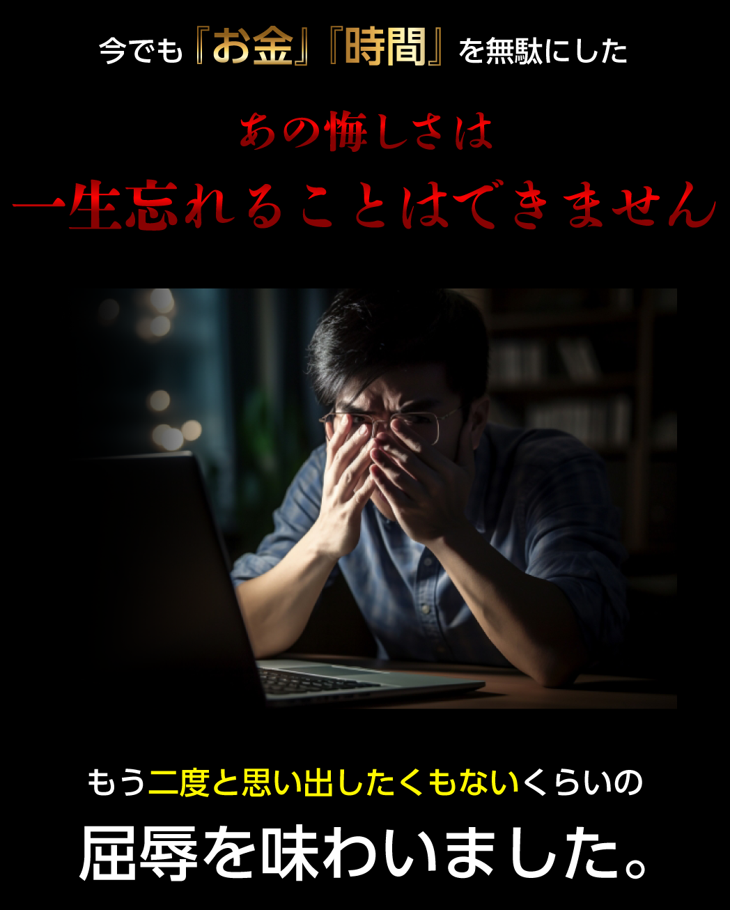 お金と時間の投資を失敗した経験や大きな屈辱を味わい、